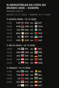 ⚽Eliminatórias UEFA – Quinta, 13/11/2025: reta final pegando fogo